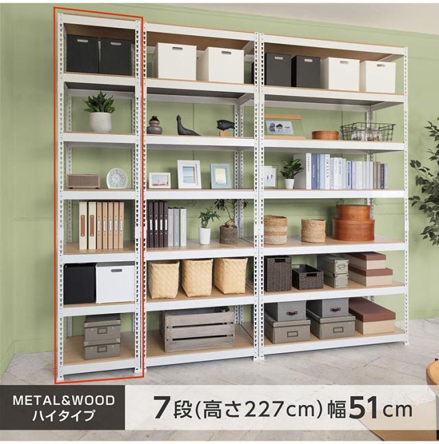 シェルフ7段 幅51cm ドリームウェア メタル&ウッドラック MK-2257NWH MK-2257NBK 1台 総耐荷重約250kg リバーシブル棚板 ボルトレス 転倒防止金具付 組立用ハンマー付 お客様組立(代引不可)【送料無料