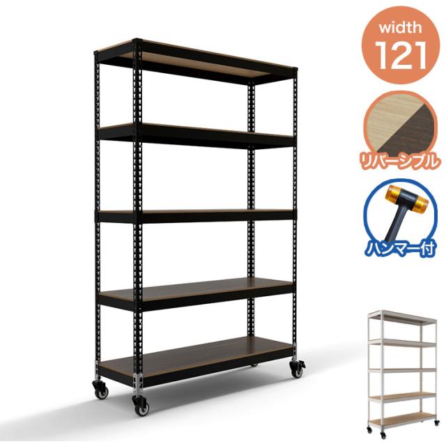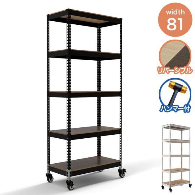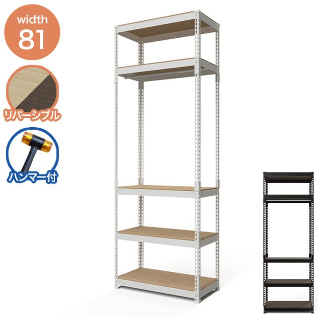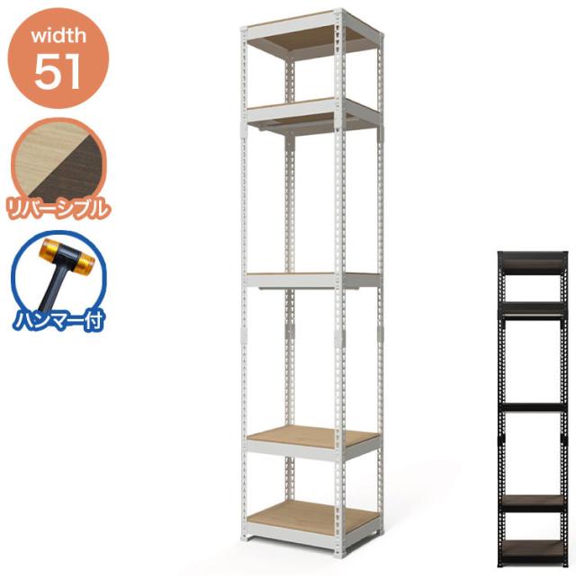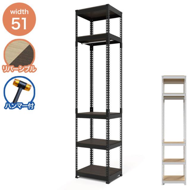 全5段 幅51cm ハンガー2段付き ドリームウェア メタル&ウッドラック MK-2255H2WH MK-2255H2BK ハンガー2本付 洋服収納可能 リバーシブル棚板 ボルトレス 転倒防止金具付 組立用ハンマー付(代引不可)