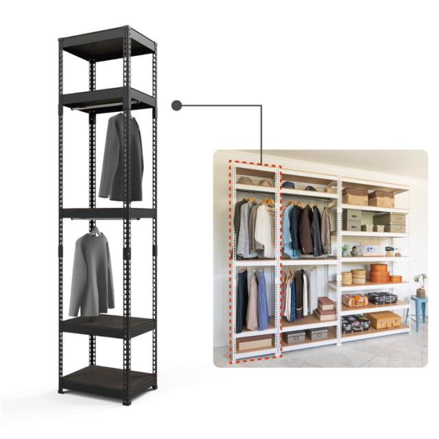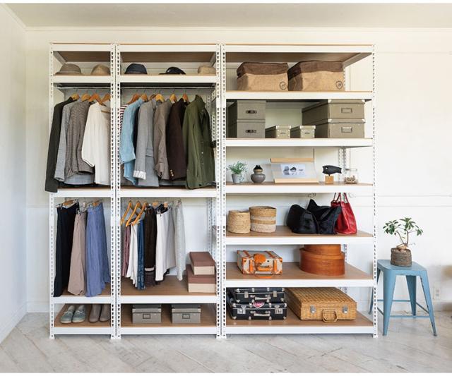 コーナー連結シェルフ3段 幅81cm+ハンガーバー