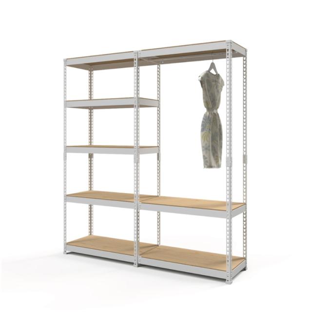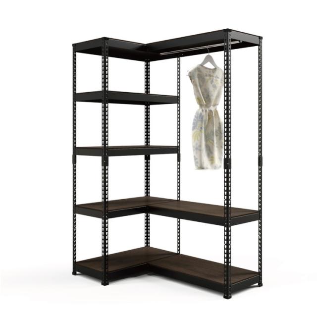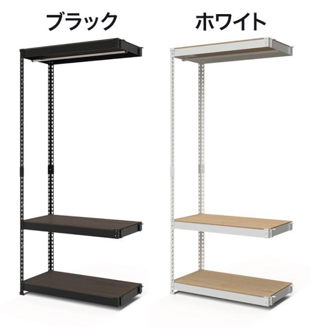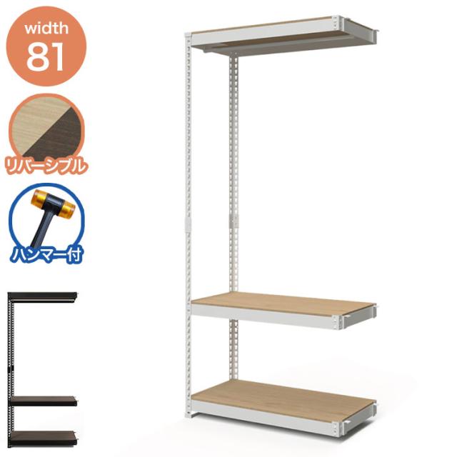 コーナー連結シェルフ3段 幅81cm+ハンガーバー
