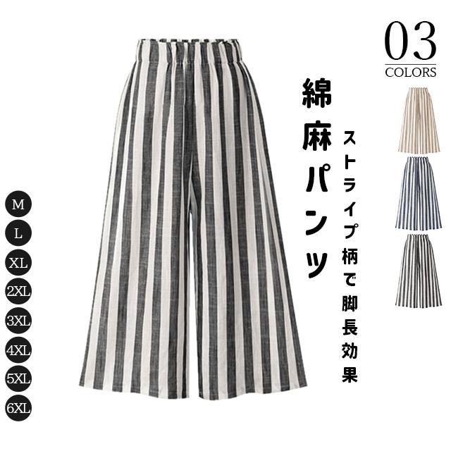 冬新作 送料無料 ストライプパンツ 新作 レディース ボトムス 総柄 パンツ ウエストゴム カジュアル サイドポケット 涼しい 大きいサイズ 麻 リネン 綿麻 おしゃれ きれいめ ゆったり オフィス 父の日