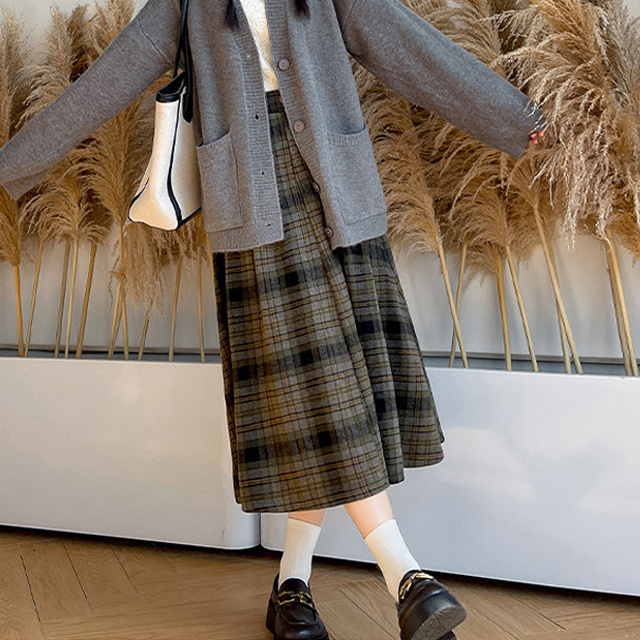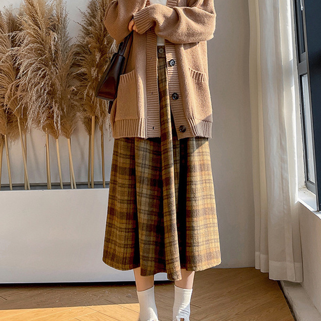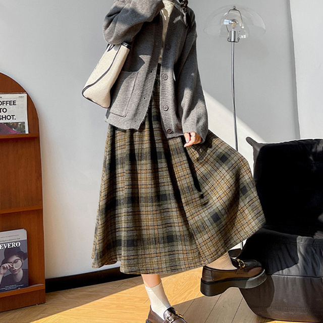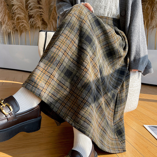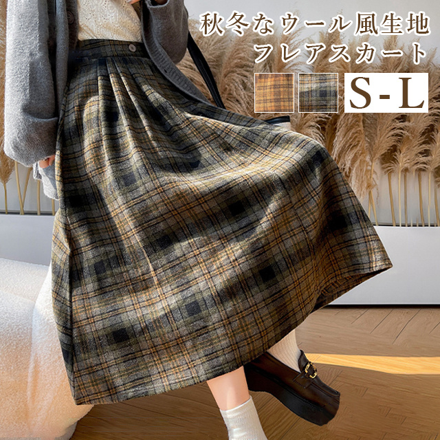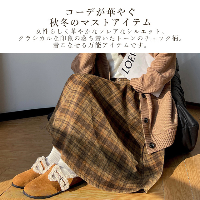 送料無料 冬新作 スカート ロング レディース チェック Aライン ロングスカート フレアスカート ギンガムチェック ハイウエスト ボトムス カジュアル 楽 ゆったり ウール風生地 きれいめ 可愛い お洒落 体型カバー 普段着 着回し お出かけ おしゃれ 着痩せ エレガント