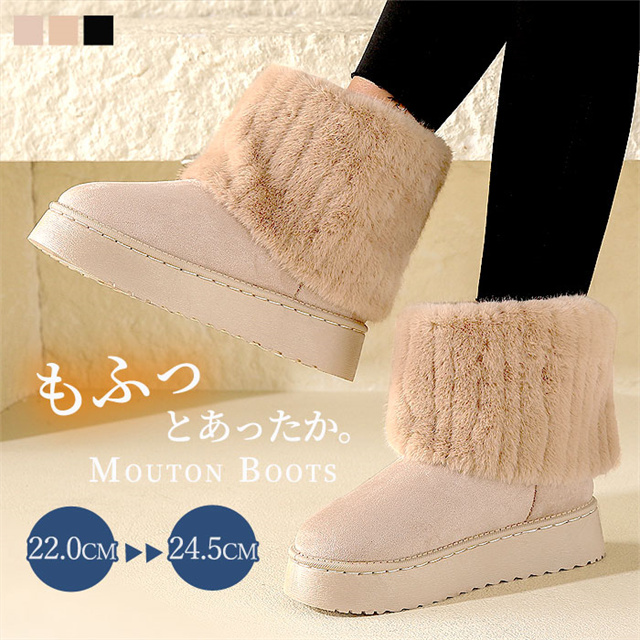 送料無料 冬新作 ムートンブーツ レディース シューズ 靴 ショートブーツ 裏ボア もこもこ 防寒 暖かい 保温 極暖 秋冬 厚底 ボアムートン あったかい カジュアル フラット ローヒール ぺたんこ 防滑 痛くない 歩きやすい