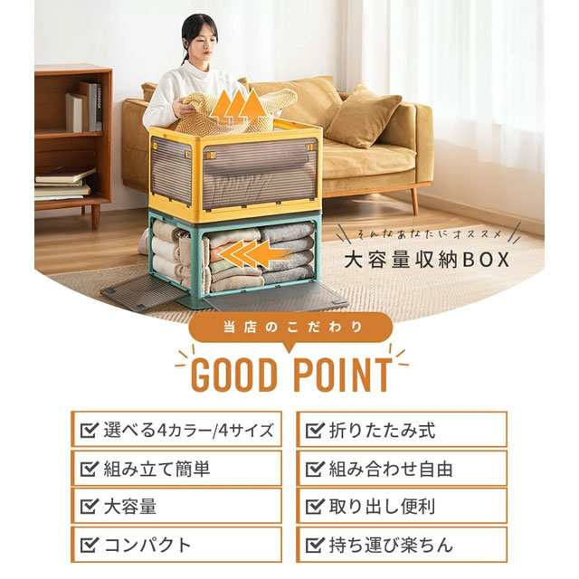 | 商品説明/注意事項 | 商品説明: ◆大容量が嬉しい収納ボックス。 ◆5面から取り出せるので大きな荷物を取り出しやすい。 ◆どこからでも隙間なく圧縮でき収納力抜群。 ◆キャスターの収納溝が付いているので積み重ねて使用可能です。 注意事項: ◆使用時の破損や事故等につきましては責任を負いかねます。 ◆輸入品の為、輸送の際に生じるキズ・汚れ・箱潰れがある場合がございますが新品です。 ◆サイズ・重量は、多少の誤差が生じる場合がございます。 ◆あくまで画像はイメージですので、商品改良の為パッケージや一部仕様が少し変更になる場合もございます。 ◆お使いのブラウザや設定により、画像と実際の商品との若干の色の違いが生じる場合がございます。 |