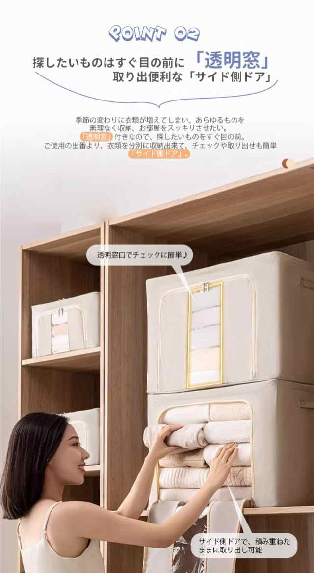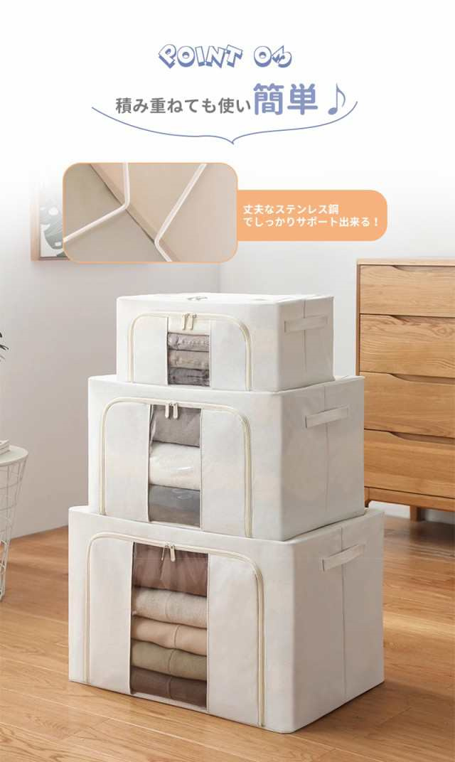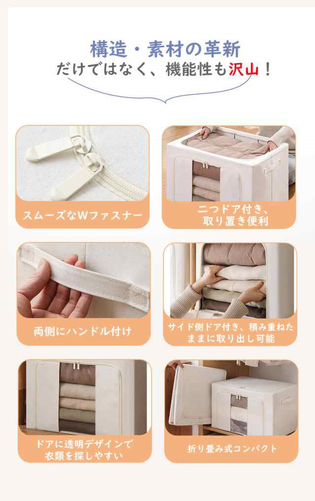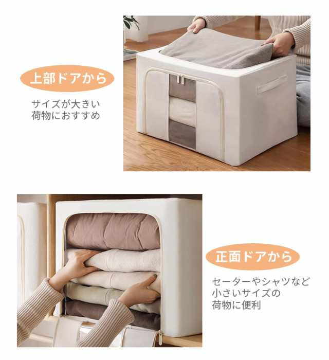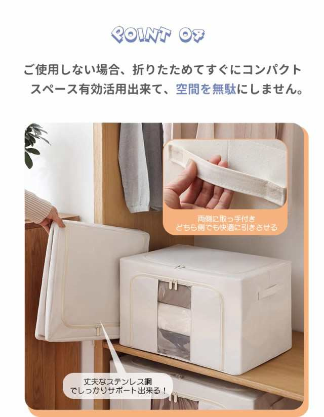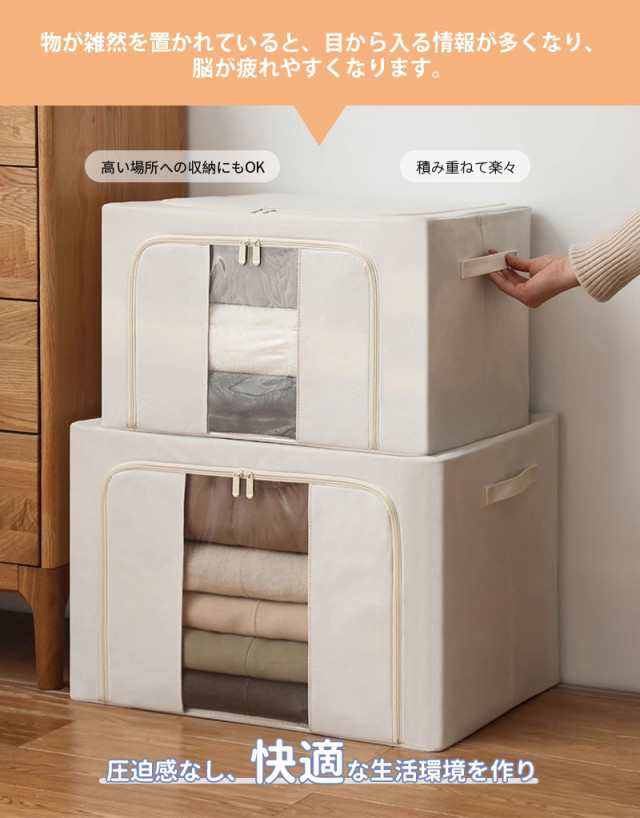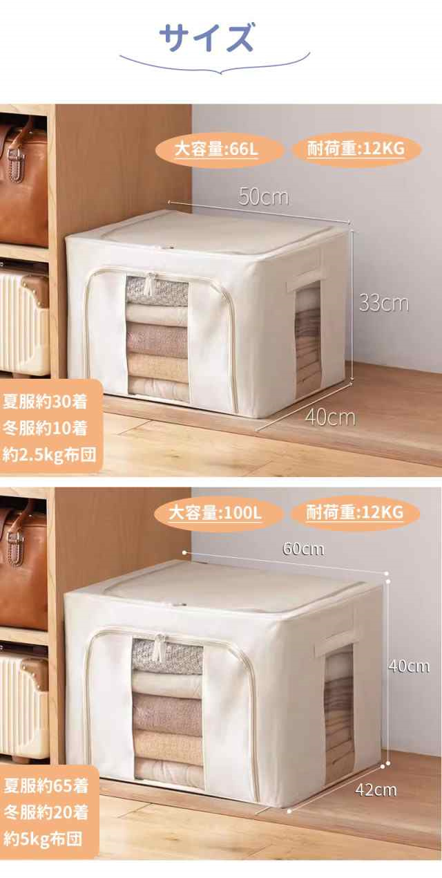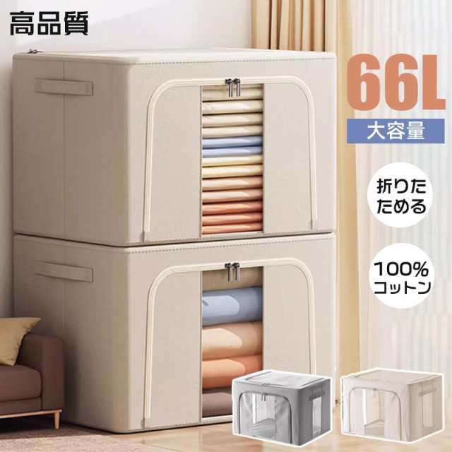冬新作 送料無料 収納ボックス 66L 衣類収納 収納ケース ボックス Lサイズ 衣類収納袋 布 布製 折りたたみ 大容量 フタ付き おしゃれ 省スペース コンパクト 押し入れ 洋服収納ボックス 布団 おもちゃ 衣類収納 整理 前開き