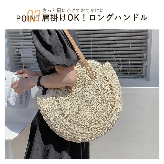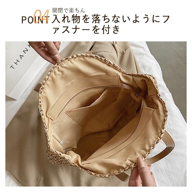 送料無料 春新作 大容量 麦わら かごバッグ 丸み 円型 ファスナー付き 編みバッグ レディース かわいい 軽量 草編み バッグ 鞄 かばん カバン 肩掛け 手提げ トートバッグ 編み 手編み おしゃれ 通勤 通学 ハンドバッグ ショルダー