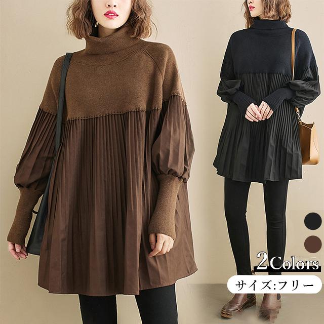 春新作 送料無料 トップス 新作 トップス レディース 秋 チュニック ハイネック 大人可愛い 体型カバー お尻隠し ニットトップス 長袖 ニットソー 人気 ゆったり 通勤 着痩せ セーター オシャレ 2色 大人 ニットセーター 長袖 お洒落