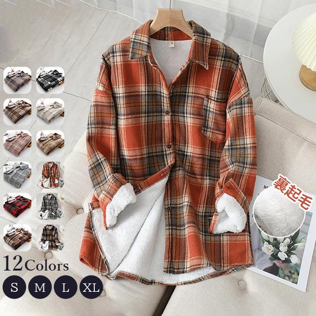 冬新作 送料無料 トップス 新作 裏起毛 ロングシャツ レディース シャツ 12色 チェク柄 チュニック 裏起毛シャツ 前ボタン 防寒 体型カバー 暖かい カジュアル コーデ 20代 30代 40代 50代 婦人服 スキッパーシャツ 韓国風