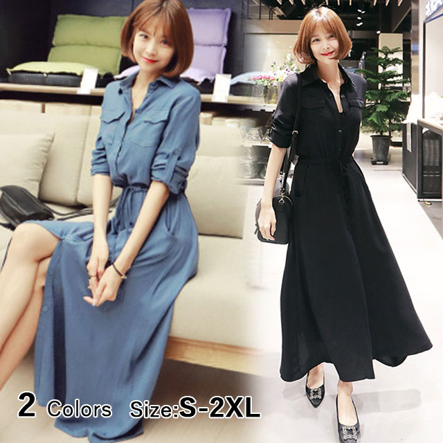 冬新作 送料無料 ワンピース 新作 ワンピース レディース ロング シャツワンピース 膝丈 婦人服 無地 ロングワンピース 大きいサイズ おしゃれ 可愛い 長袖 春秋 大きいサイズ リボン 30代 40代 50代