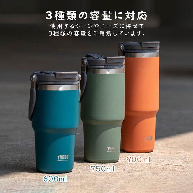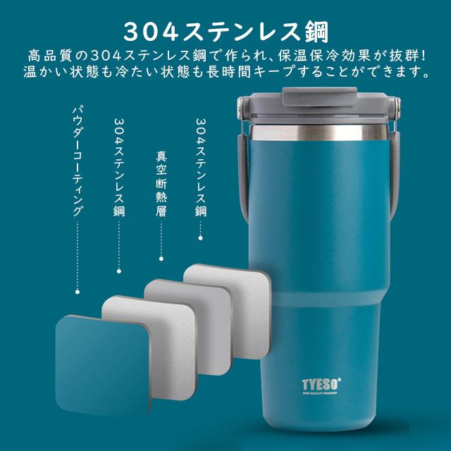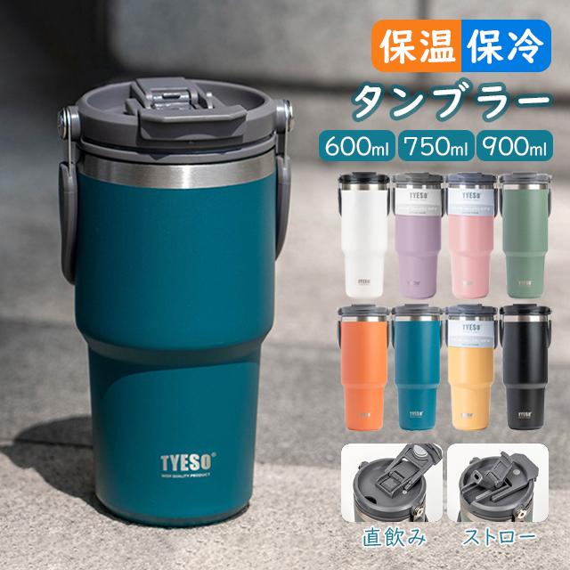 「SNS話題!」TYESO正規品 タンブラー こぼれない ストロー 600ml 750ml 900ml 保温 保冷 蓋付き 水筒 マグ スポーツ オフィス ジャグ 持ち運び 取っ手 2way コーヒー 304ステンレス 広口 おしゃれ 真空 ボトル 魔法瓶 直飲み 2024冬新作 送料無料