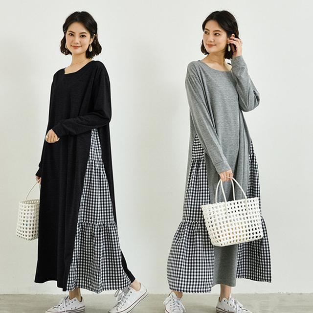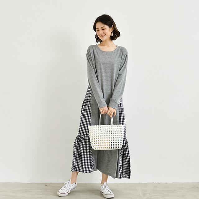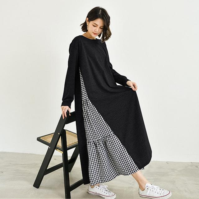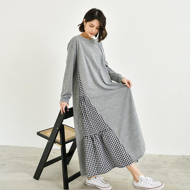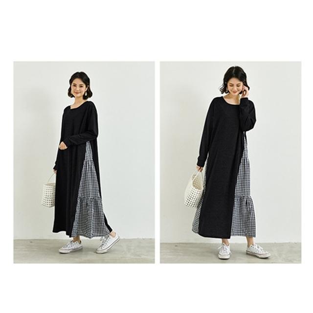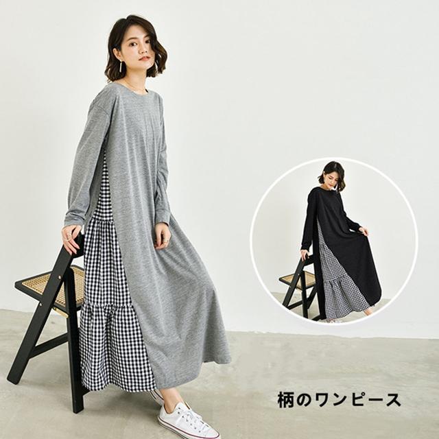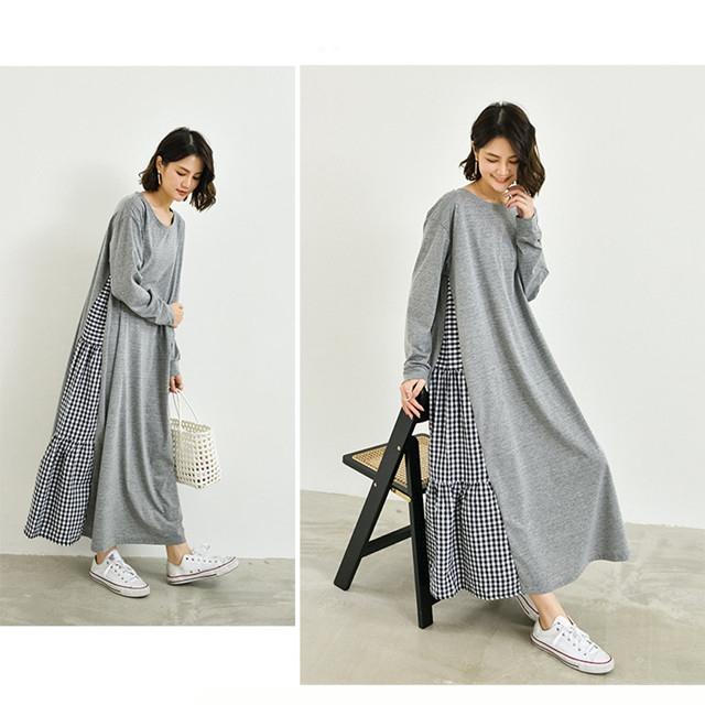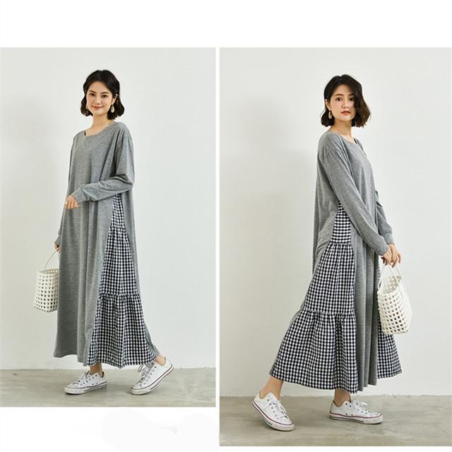 冬新作 送料無料 ワンピース 新作 長袖ワンピース フリーサイズ ロングワンピース これな レディースワンピース チェック柄 婦人服 ゆったり 大きい 膝丈 春夏 大きいサイズ 30代 40代 50代 60代
