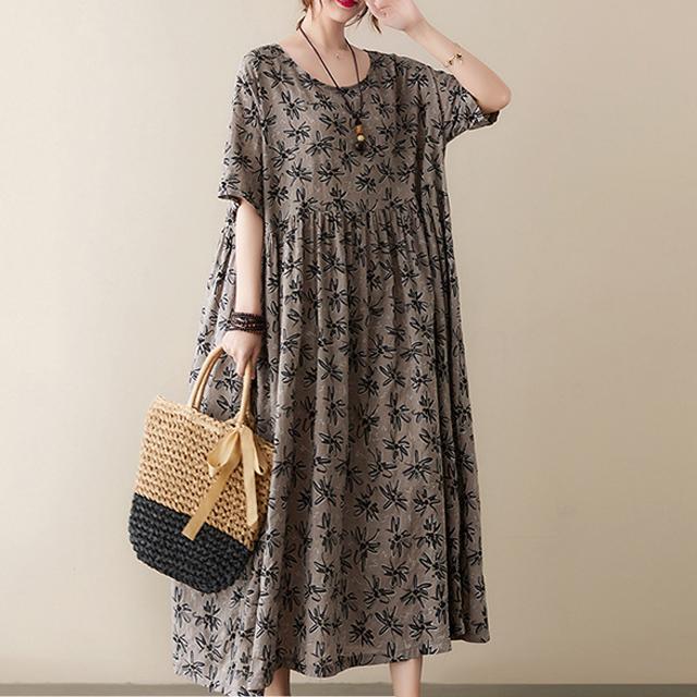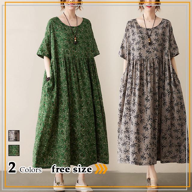 冬新作 ワンピース 新作 送料無料 レディースワンピース ワンピース 体型カーバーワンピース 花柄 婦人服 ゆったり 大きいサイズ 膝丈 半袖 春夏 大きいサイズ 30代 40代 50代 60代