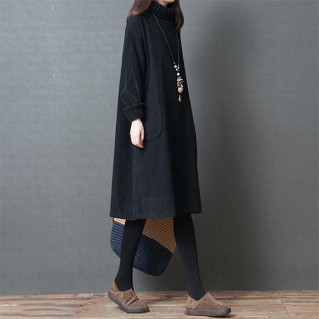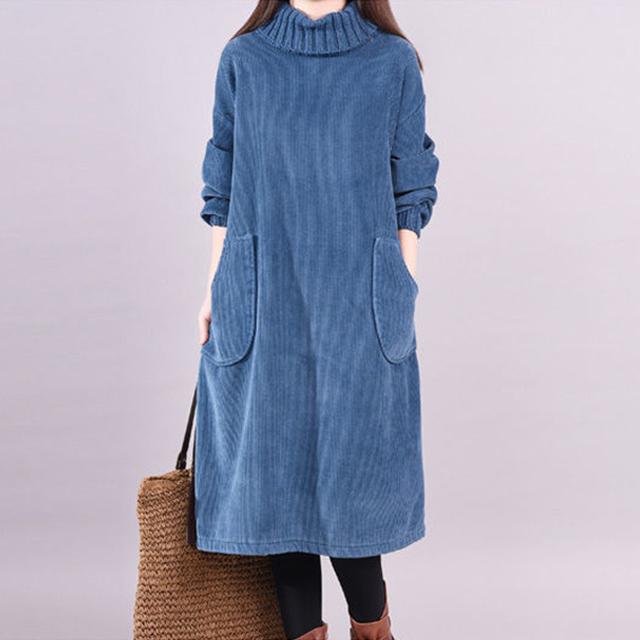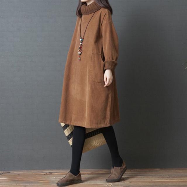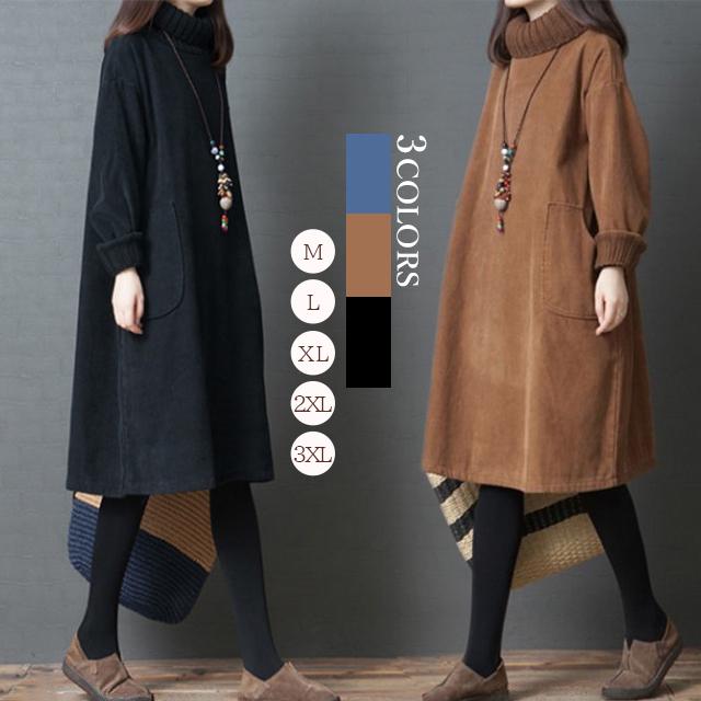 冬新作 送料無料 ワンピース 新作 レディース 秋 コーデュロイ チュニック 上品 カジュアル レディースワンピース ハイネック セーター 可愛い かわいい 綺麗 きれい キレイめ フェミニン 無地 体型カバー オシャレ ゆったり