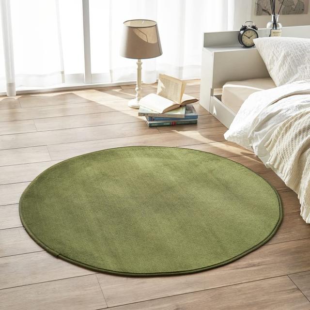 ◆商品名:アイリスプラザ フランネルラグ グリーン 円形 140? 滑り止め付き ラグ 洗える ラグカーペット マット カーペット対応 防ダニ フランネ