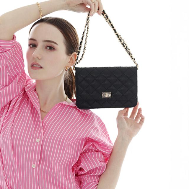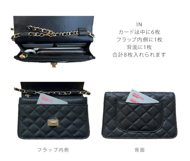 キルティングチェーンバッグ【Caviar Oggia キャビア オッジア】 キャビアスキン スマホショルダー ミニショルダー お財布バッグ ポシェット お財布ショルダー ウォレット ショルダー チェーン 長さ調整可 軽量