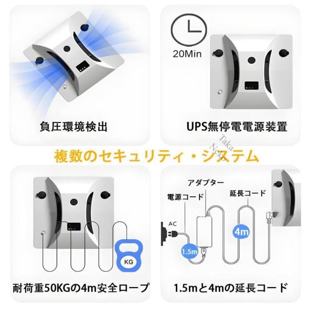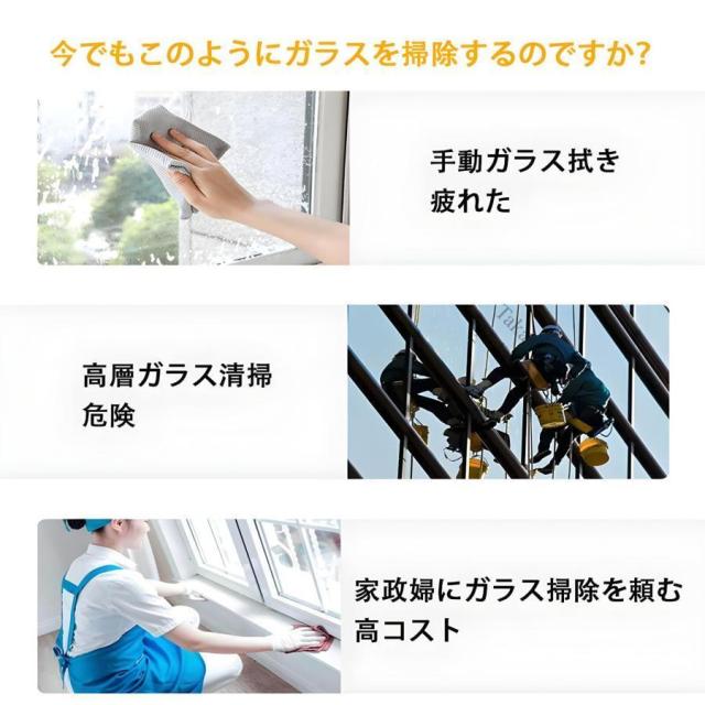 窓拭きロボット 自動ガラス掃除機 窓掃除ロボット 双方向自動スプレー 超薄型ボディ 強力吸引 落下防止 窓ガラス掃除 高層窓天井用 リモコン付き