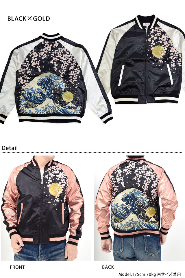 刺繍に定評のある古舗ブランド、華鳥風月さんから「桜大波サテンスカジャン(3041802)」のご紹介です! カジュアルなサテン生地を使用し、気軽にお楽しみ頂くことの出来るスカジャンを製作しました。 今回、モチーフの主役に採用されたのは、美しい【桜】柄。 カラーは選べる3色。それぞれのボディーカラーによって、雰囲気も少しずつ変わります。 1枚持っているだけでずっと使えるアイテムです。 | ||||||||||||||||||||