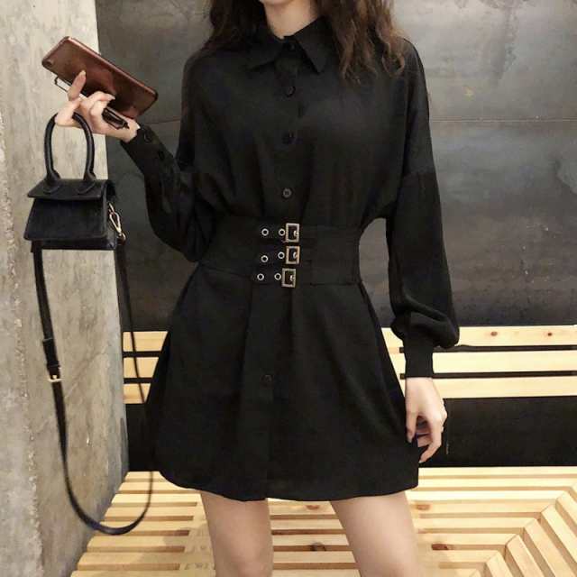 ブラウスワンピース / レディース デート お出かけ 可愛い かっこいい レトロ ワンマイルウェア 飲み会 体型カバー 上品 女子会 お出かけ 買い物 ショッピング 食事会 パーティー ベリーカバードレス スリミングシャツ ボトミングリトル スカート ショートスカート ショート丈 ポロ襟 ブラウス ルーズ シンプル 大人カジュアル 春 秋 長袖 ショート丈 シングル ショート丈スカート シャツワンピース プレーン 10代 20代 ロック 原宿 個性 ミディアム 無地 ブラック 黒