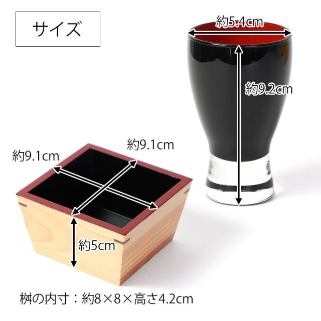 | サイズ(約) | 升:約9.1×9.1×高さ5cm(内寸:約8×8×高さ4.2cm) グラス:(約)直径5.4×高さ9.2cm |