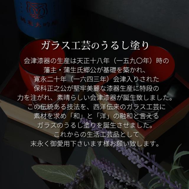 ひのき製の升と酒器のセットです。 会津漆器の伝統的な技術と美しいデザインが融合した逸品です。 鮮やかな朱色とシックな黒色の2色展開で、どちらもそれぞれの魅力を引き立てます。 さらに、セットの桝もそれぞれのカラーに合わせたカラーリングが施されており、統一感のあるデザインになっています。 お酒を楽しむためだけではなく、見た目にも華やかさを添え、食卓を彩ります。 祝い事や特別な行事など、大切な時間に是非ご活用ください。 専用箱入りなのでギフトにも最適なセットです。 <ガラス工芸のうるし塗り> 会津漆器の生産は天正十八年(一五九〇年)時の藩主・蒲生氏郷公が基礎を築かれ、寛永二十年(一六四三年)会津入りされた保科正之公が堅牢美麗な漆器生産に特段の力を注がれ、素晴らしい会津漆器が誕生致しました。 この伝統ある技法を、西洋伝来のガラス工芸に素材を求め「和」と「洋」の融和と言えるガラスのうるし塗りを誕生させました。 これからの生活工芸品として末永く御愛用下さいます様お願い致します。 |