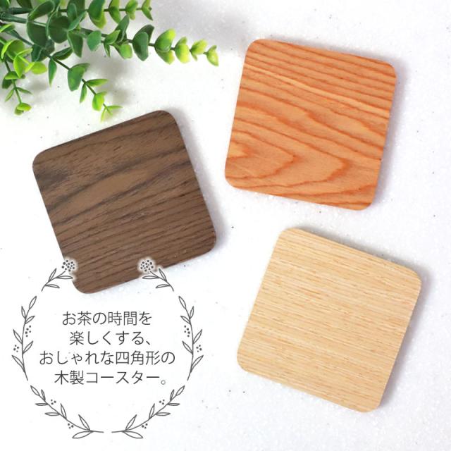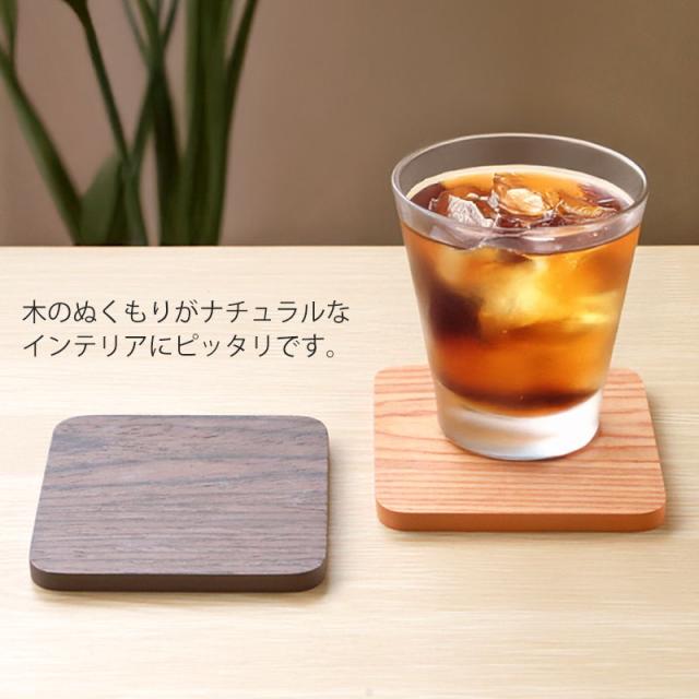 コースター 木製 四角 おしゃれ 北欧 ウォルナット チェリー オーク オシャレ 可愛い 無地 シンプル 正方形 ウォールナット 四角形 角型 茶托 茶たく ナチュラル カフェ風 敷物 ギフト プレゼント キッチン雑貨