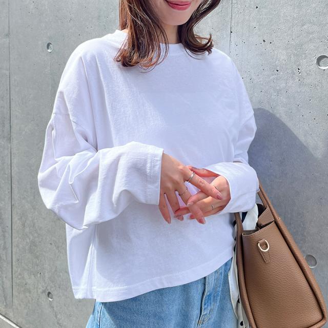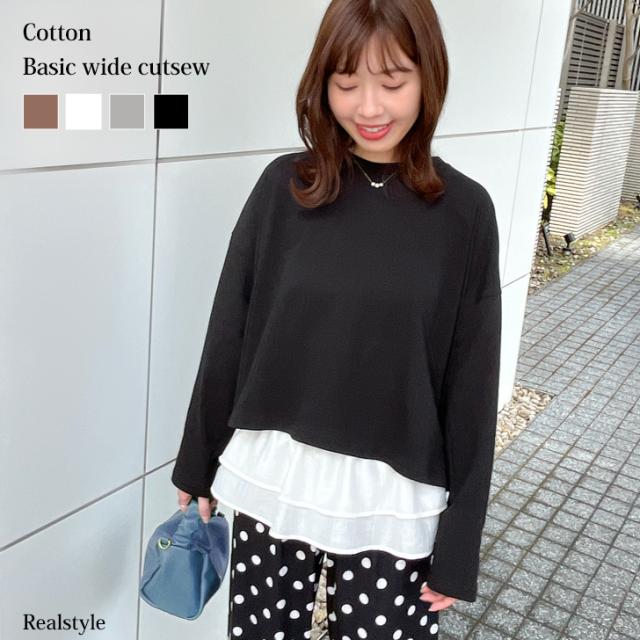 コットンベーシックワイドカットソー レディース 長袖 綿 薄手 Tシャツ ロンT ゆったり 大きめ カジュアル おしゃれ 春 夏 秋 可愛い シンプル 韓国ファッション 丸首 無地 デイリー 着回し 楽ちん ラフ ゆる ルーズ ストリート 柔らかい 10代 20代 30代 レイヤード 重ね着 通勤 通学 お出かけ 運動 ジム ヨガ 普段使い 普段着 ショート丈 丈短め 上 ロングシーズン 春夏 やわらか 通気性 吸湿性 吸汗性 敏感肌 韓国 学生 高校生 大学生 学校 レッスン ダンス 衣装 ワンマイル 部屋着 ルームウェア 旅行 レジャー アウトドア ヒップホップ 大人カジュアル お洒落 オシャレ 買い物 ショッピング デート 女子会 イベント フェス ライブ コンサート スポーティー プルオーバー 長袖カットソー 長袖Tシャツ ワイドT Tee シンプルTシャツ シンプルT 無地Tシャツ 無地T ワイドスリーブ クルーネック ラウンドネック オーバーサイズ オーバーシルエット ワイドシルエット メンズライク 体型カバー 体形カバー ナチュラル かわいい きれいめ キレイめ 大人 オトナ 上品 オフィス OL