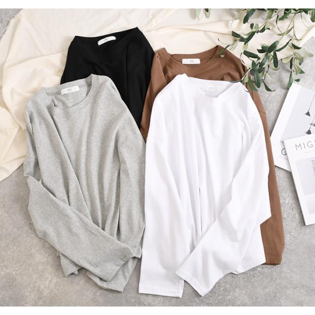 新作 カットソー レディース 長袖 綿 コットン 薄手 Tシャツ ロンT ゆったり 大きめ カジュアル 春 夏 秋 シンプル 韓国 丸首 無地
