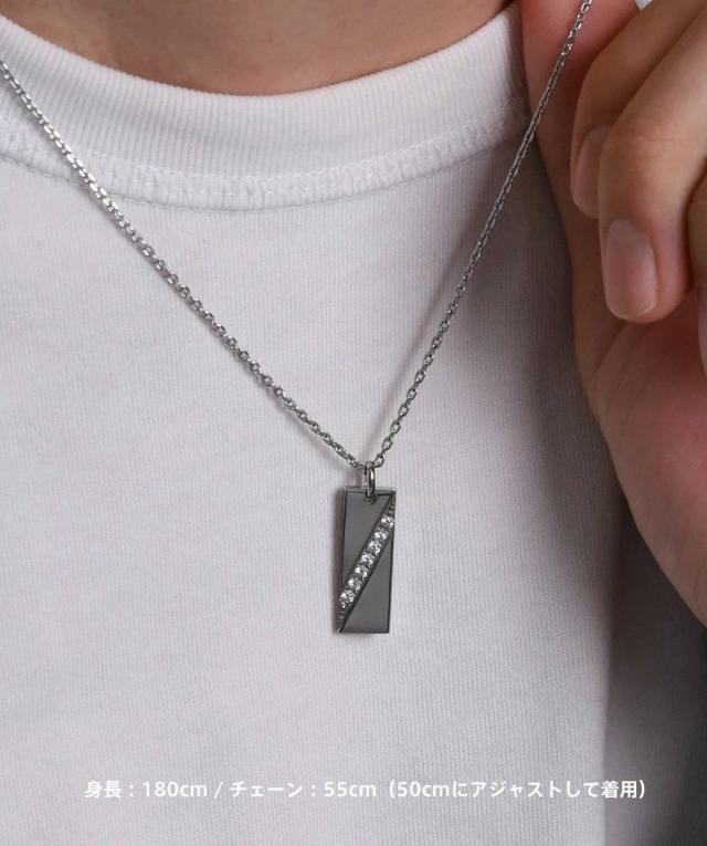 | サイズ | (メンズ)本体縦約:2.40cm 横約:0.84cm 厚み約:0.20cm チェーン全長:約55cm(50 / 55cm 段階調節可)幅約:0.16cm ※チェーン取外可 (レディース)本体縦約:2.00cm 横約:0.68cm 厚み約:0.15cm チェーン全長:約43cm(40 / 43cm 段階調節可)幅約:0.12cm ※チェーン取外可 |