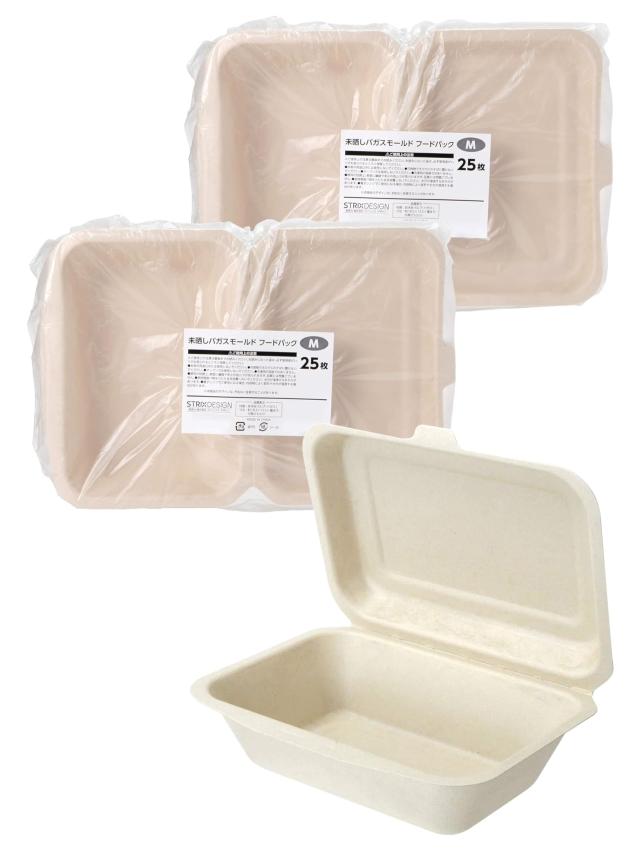 【.co.jp 限定】 ストリックスデザイン 使い捨て容器 弁当箱 フードパック 25枚×2個セット Mサイズ 未晒し 耐水 耐油 レンジ対応