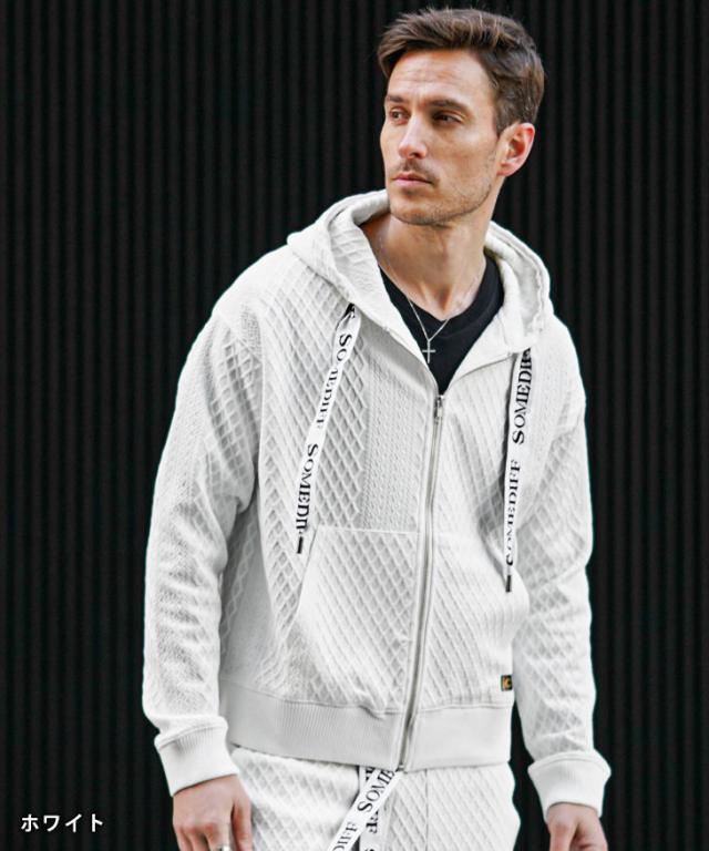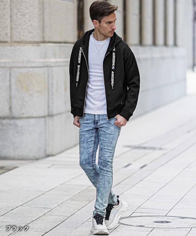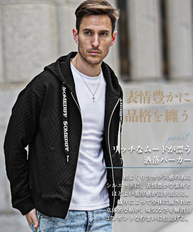 パーカー メンズ ジップパーカー ブランド ジップアップパーカー ZIP ストレッチ 総柄 無地 白 黒 ホワイト ブラック セットアップ対応 YKK ファスナー 春 春服 春物 メンズファッション ちょいワル オラオラ系 イケオジ JOKER ジョーカー 新作