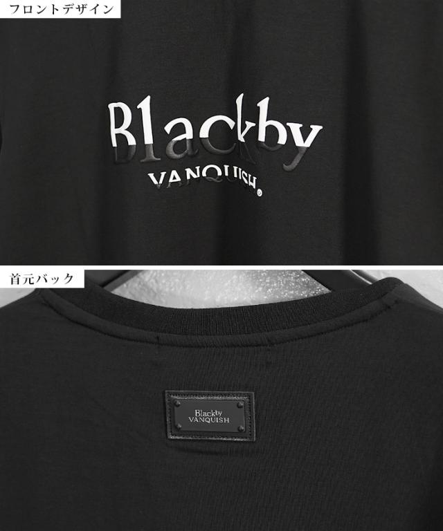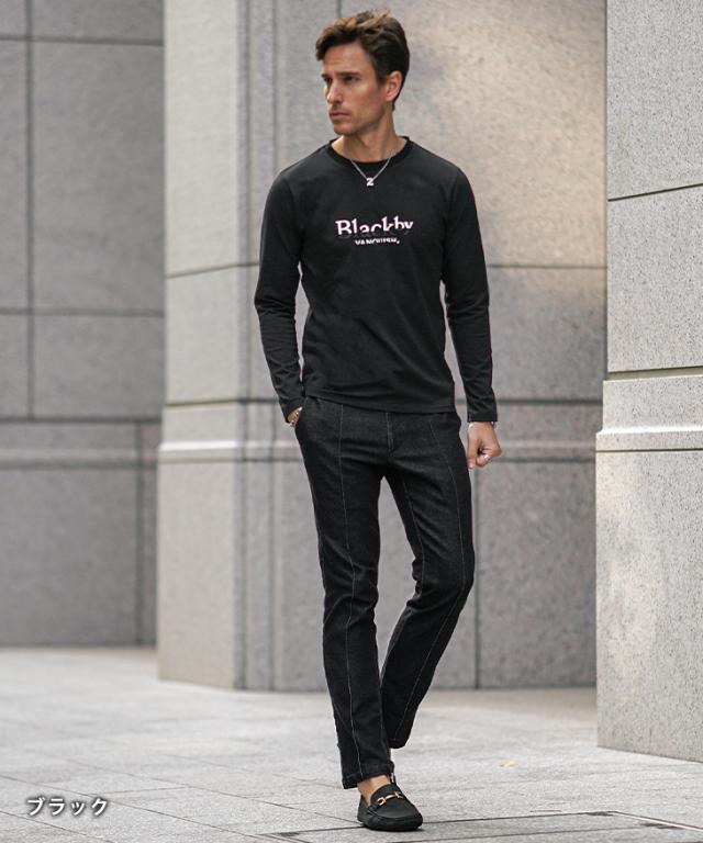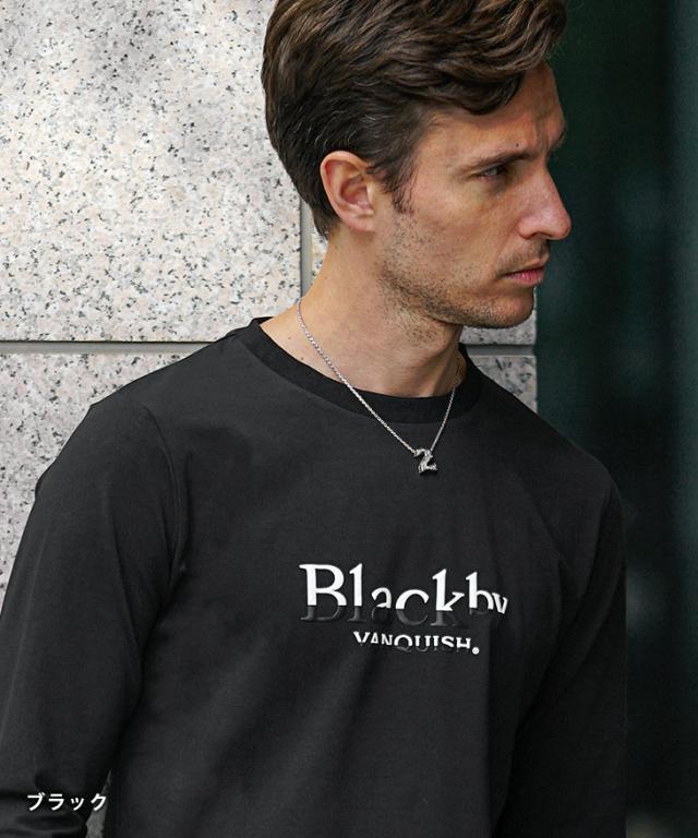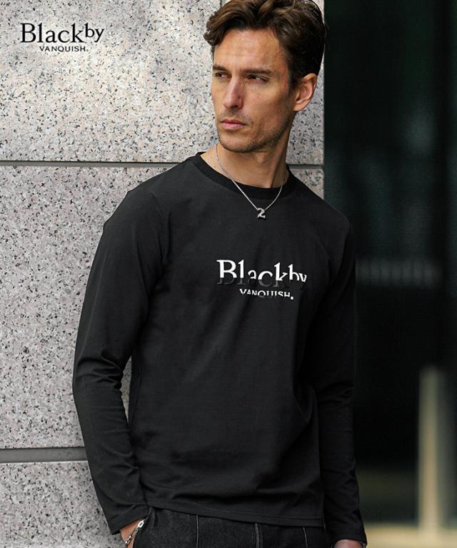 クルーネック Tシャツ メンズ ブランド 長袖 黒Tシャツ ストレッチ カットソー 長袖 発砲プリント ロゴ Tシャツ スリム タイト 細身 LL XL ちょいワル お兄系 Black by VANQUISH ブラックバイヴァンキッシュ 春 春服 春物 新作 春新作 春夏