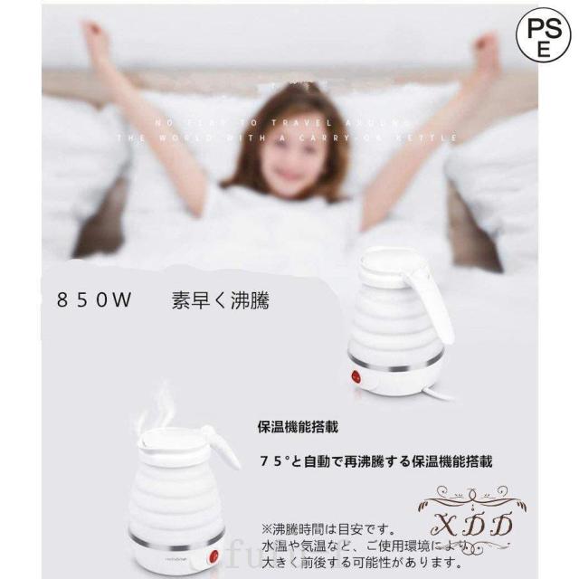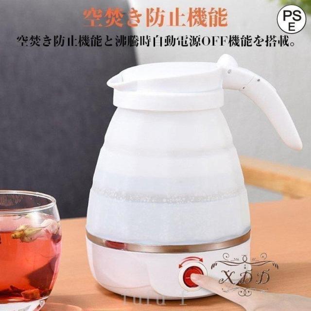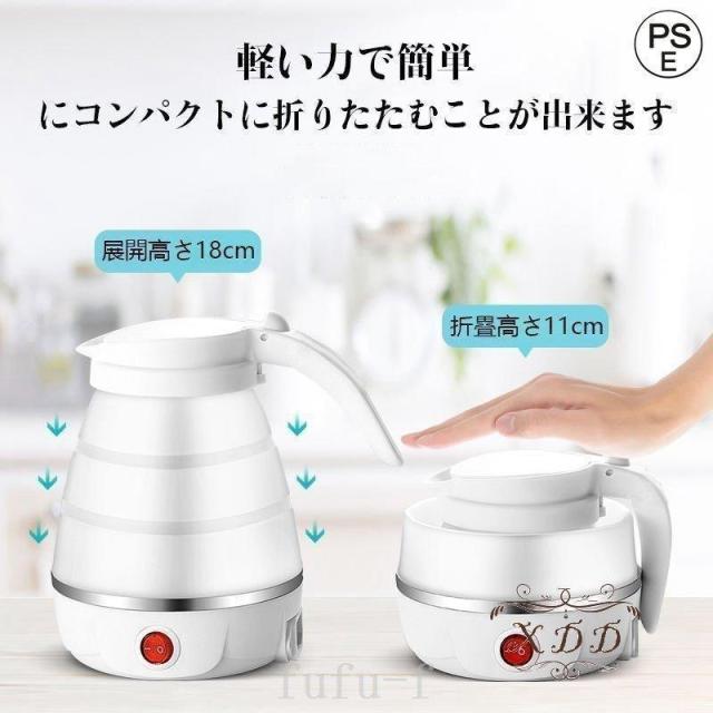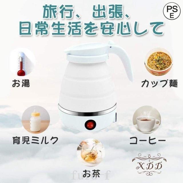 コンパクトトラベルケトル折りたたみ式シリコンケトル水煮600ml湯沸かし器断熱機能付き電気ポットアウトドア携帯便利旅行/出張/自宅/キャンプ
