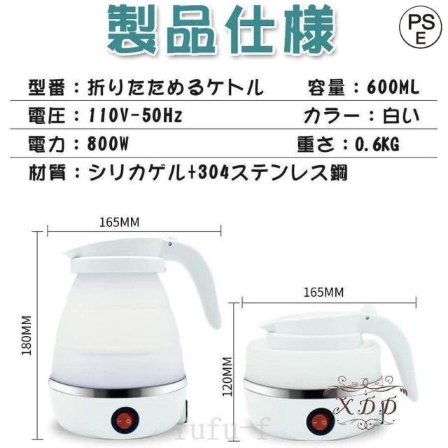 容量:600ml使用時:幅140mm×高さ180mm収納時:幅140mm×高さ110mm重さ:0.6KG電源コード:約1m(Aプラグ)