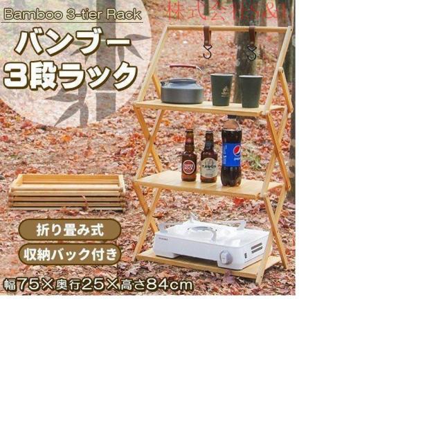 3段ラック キャンプ 竹製 ウッドラック 折りたたみ サイドテーブル アウトドアテーブル ラック 三段ラック 折り畳み シェルフ 棚 収納