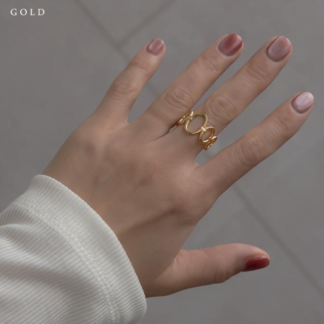 中央に向かって大きさの異なる楕円リングを連ねたスタイリッシュなオープンデザイン。