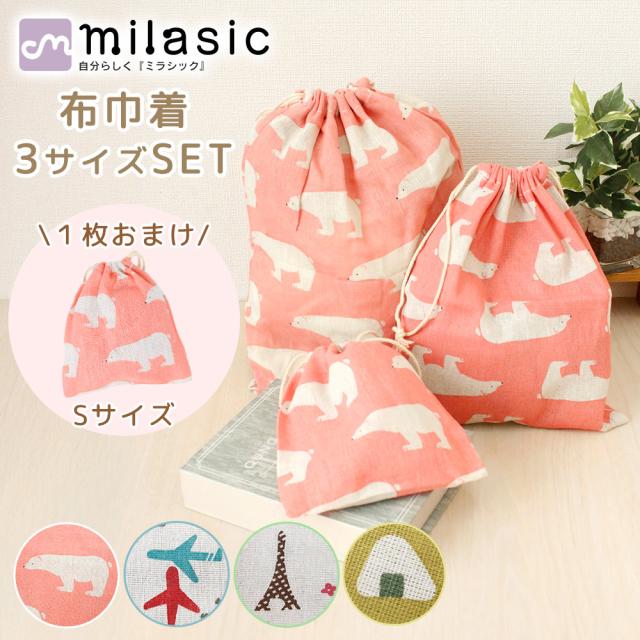 【MILASIC公式】巾着 ポーチ 3サイズ セット コップ マスク 入れ 袋 給食 給食袋 給食着 エプロン入れ 着替え袋 着替え入れ 通園 通学 入園 歯磨きセット 縄跳び なわとび カトラリー お道具 コップ入れ マスク入れ 幼稚園 保育園 小学校 小物入れ 男の子 女の子 靴袋