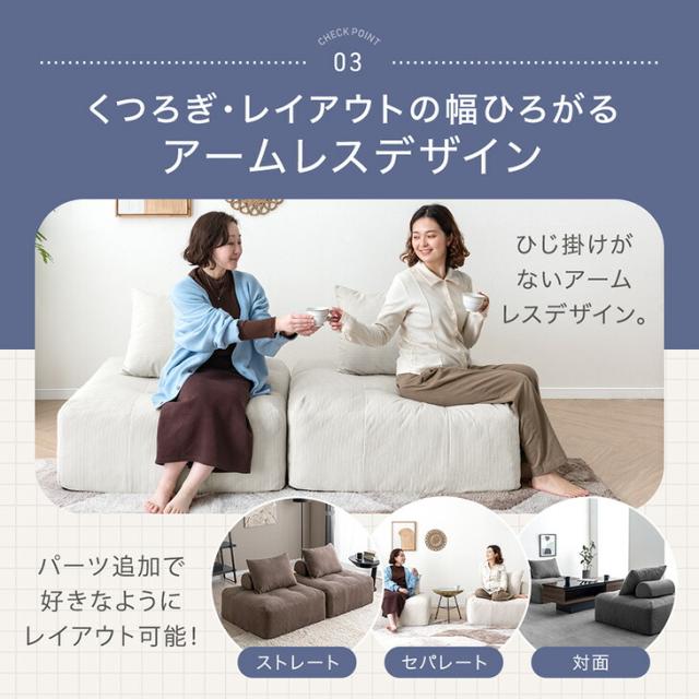 ・くつろぎの幅広がるアームレスデザイン
