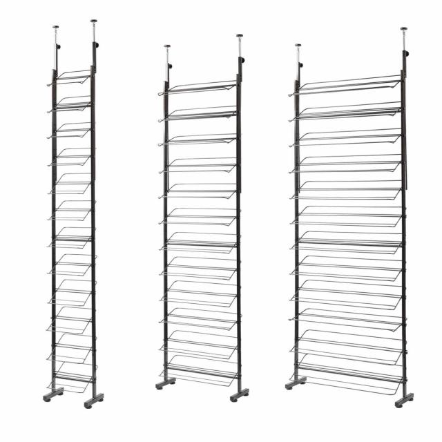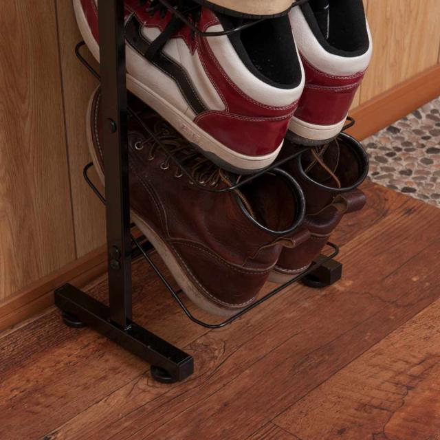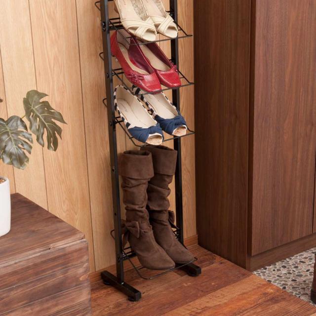 ぺったんこのシューズはもちろん、ワイヤー部分にヒール部分が引っかかるのでハイヒールでも収納できます。棚板を外せば背の高いブーツや長靴も収納可能です。