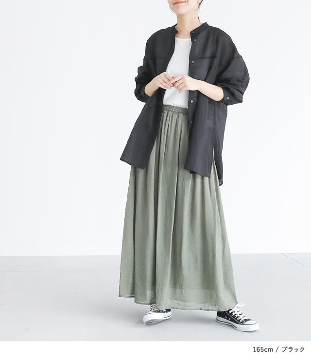 ■デザイン 切り替えのデザインがさりげないポイントになったシンプルなバンドカラーシャツ。ゆるっとしたシルエットで、程よい上品な透け感があるのでラフにさらっと着られるのがポイントです。 ■コーディネート キレイめからからカジュアルまで幅広い着こなしができるアイテム。ボタンを閉じてトップスとしても、羽織りとしても着用できるので着回しが万能です。 ■素材 少し艶のある質感と、さらりとした風合いの生地を使用。透け感も程よくあり、季節の変わり目に快適な着心地を叶えます。 |
