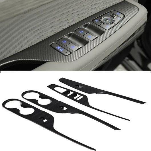 適用: ヒュンダイ/現代/HYUNDAI パリセード 2022 2023 ABS カーボンファイバー インテリア アクセサリー ウインドウ スイッチ パネル カバー トリム インナー ドア パネル スタイリング