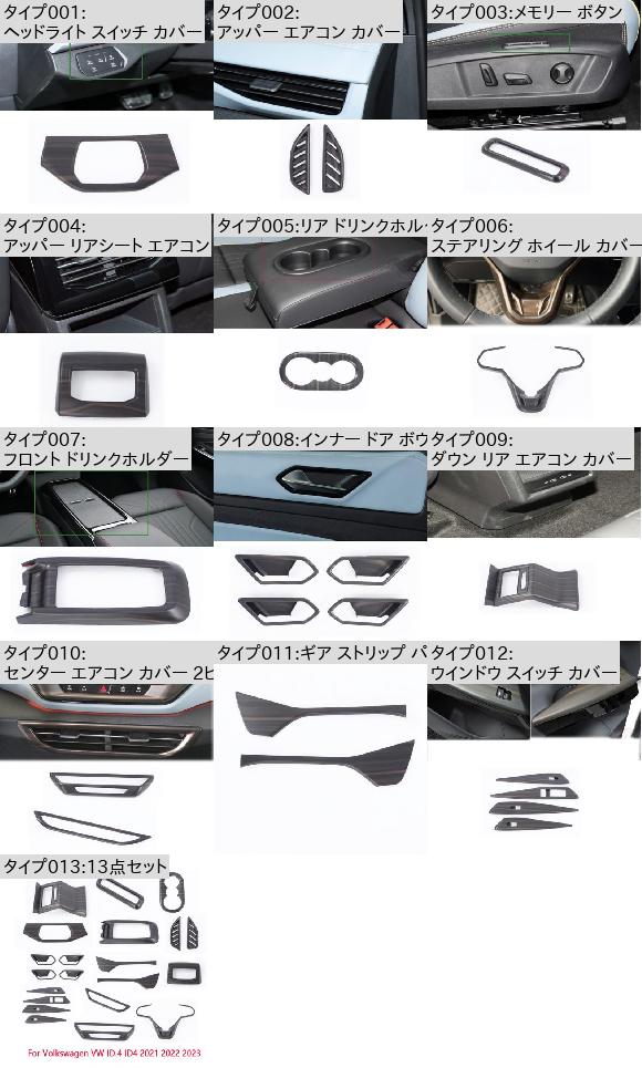 ・タイプ007:フロント ドリンクホルダー〜タイプ012:ウインドウ スイッチ カバー
