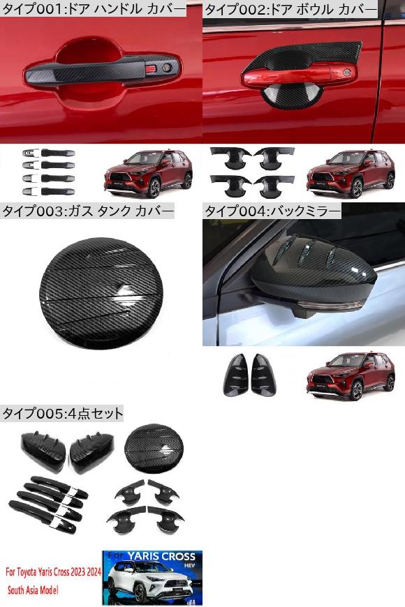 適用: トヨタ ヤリス ヴィッツ クロス 2023 2024 エクステリア アクセサリー バックミラー ミラー カバー トリム ドア ハンドル ボウル カバー ステッカー トリム スタイリング
