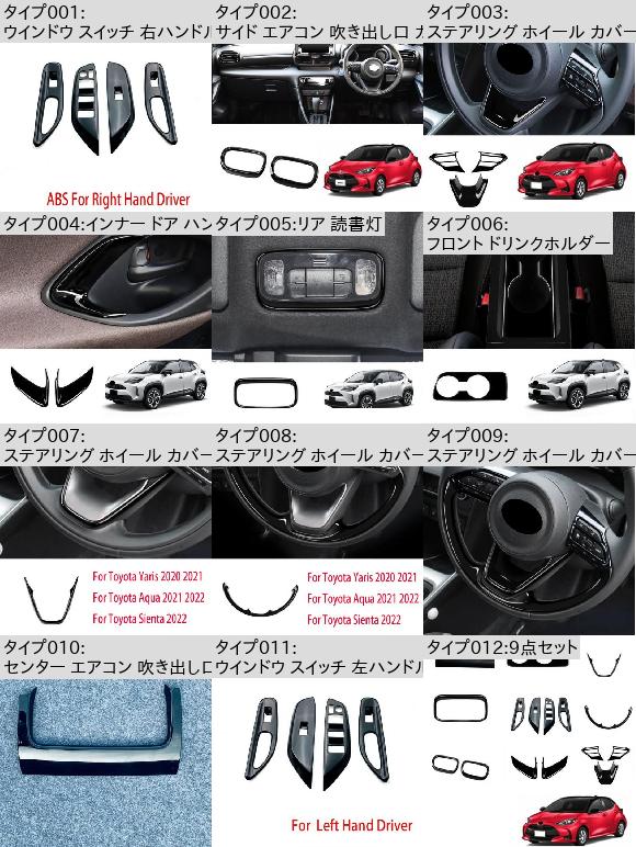 ABS ブラック インテリア アクセサリー 適用: トヨタ ヤリス ヴィッツ クロス 2020-2022 2023 ウインドウ スイッチ パネル カバー ステアリング ホイール ボタン カバー トリム