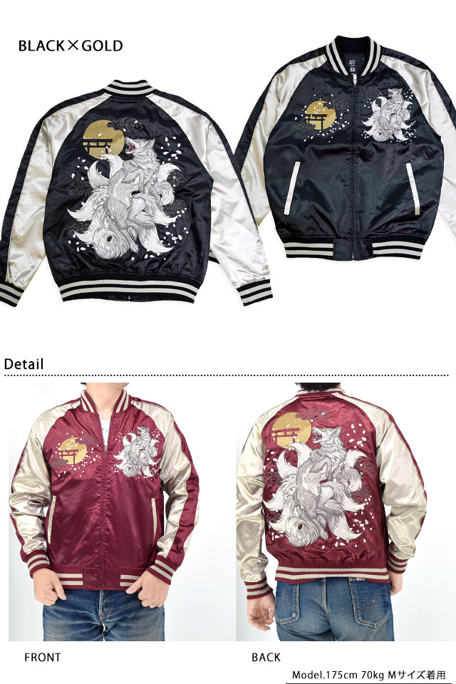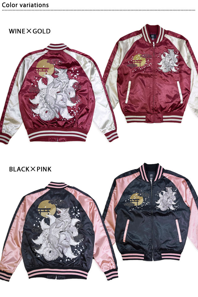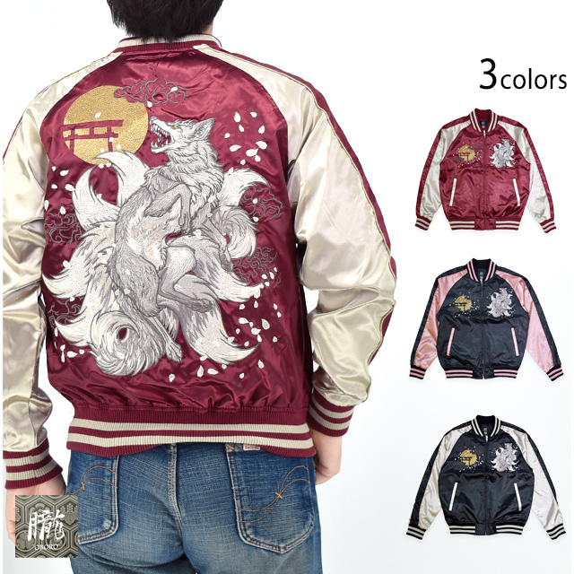 刺繍に定評のある古舗ブランド、華鳥風月の姉妹ブランド「朧」から「九尾サテンスカジャン(9051811)」のご紹介です! カジュアルなサテン生地を使用し、気軽にお楽しみ頂くことの出来るスカジャンを製作しました。 今回、モチーフの主役に採用されたのは、近年人気を博している【九尾】柄。 カラーは選べる3色。それぞれのボディーカラーによって、雰囲気も少しずつ変わります。 1枚持っているだけでずっと使えるアイテムです。 | ||||||||||||||||||||