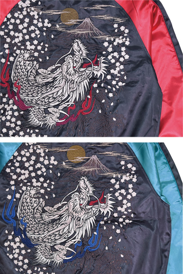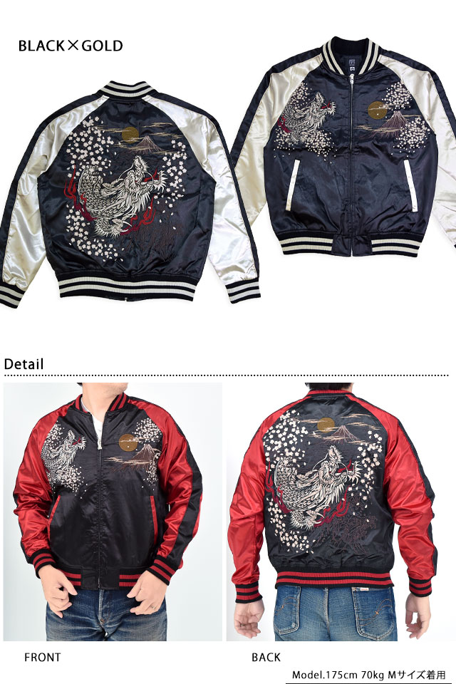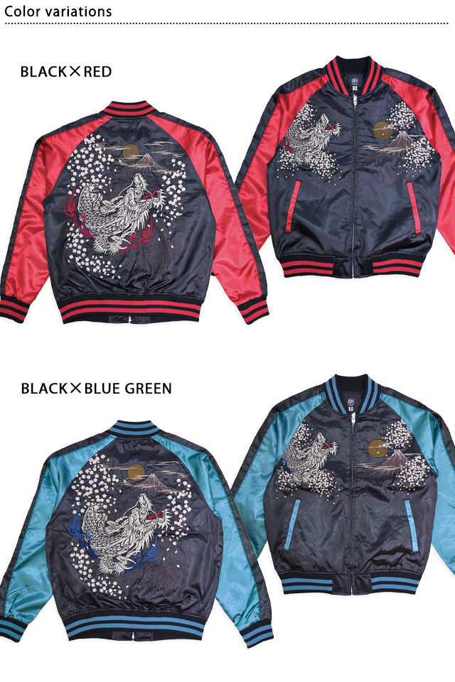 刺繍に定評のある古舗ブランド、華鳥風月の姉妹ブランド「朧」から「龍サテンスカジャン(9051812)」のご紹介です! カジュアルなサテン生地を使用し、気軽にお楽しみ頂くことの出来るスカジャンを製作しました。 今回、モチーフの主役に採用されたのは、根強い人気を誇る【龍】柄。 カラーは選べる3色。それぞれのボディーカラーによって、雰囲気も少しずつ変わります。 1枚持っているだけでずっと使えるアイテムです。 | ||||||||||||||||||||