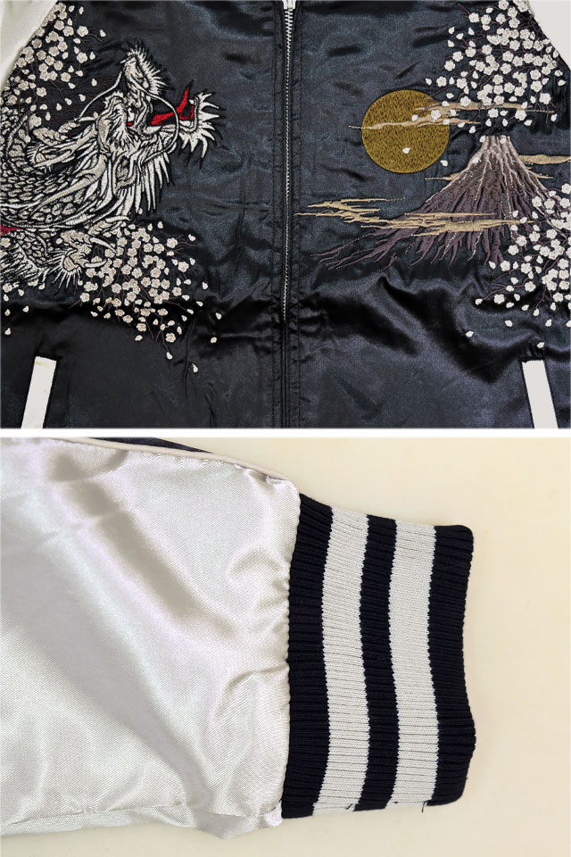 龍サテンスカジャン 朧 9051812 和柄 和風 刺繍 竜 ドラゴン スーベニアジャケット おぼろ 桜 さくら