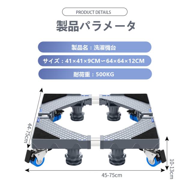 \限定クーポン/洗濯機台 かさ上げ キャスター付き 置き台 洗濯機 台車 置台 防水パン 洗濯機パン 縦型 底上げ 移動 4輪4足 組み立て簡単 幅41-64cm