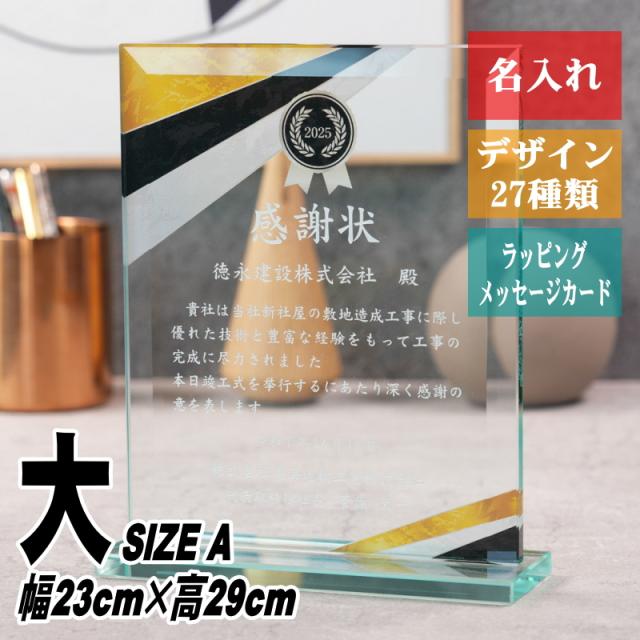 名入れ ソーダガラス 表彰盾 PS-2(大) シンプル 記念品 退職祝い 表彰状 感謝状