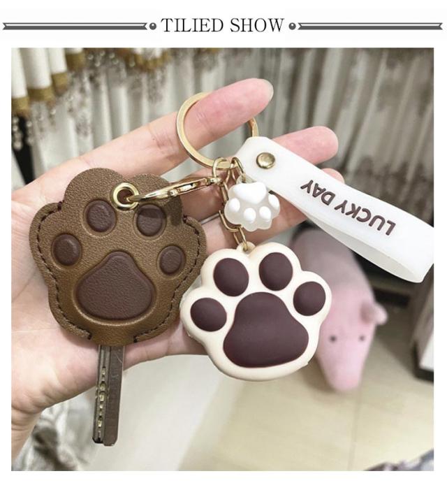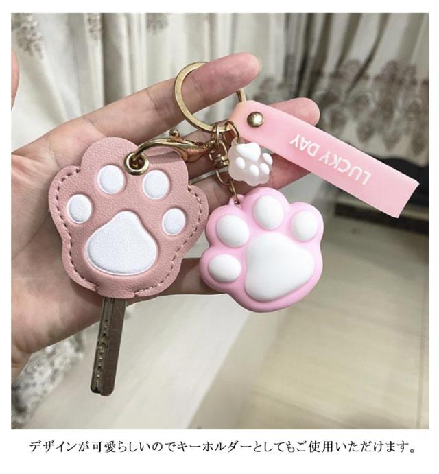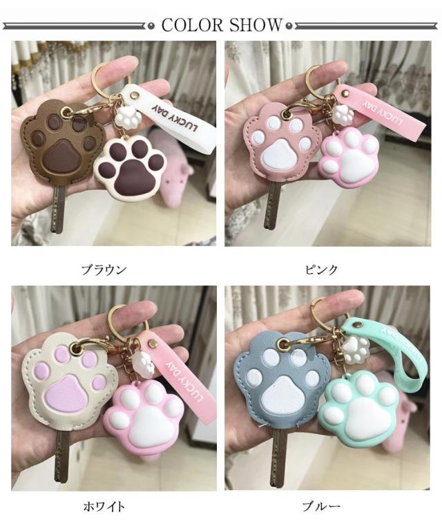 ねこのキーカバー キーケース キーホルダー キーカバー 鍵 フェイクレザー かわいい 肉球 ねこ キーキャップ キーカバー 革 カギ PU 紛失防止 キーカバー カバー 可愛い レザー カギ 猫 キャット ねこ猫好き プレゼント チャーム おしゃれ 鍵カバー プレゼント