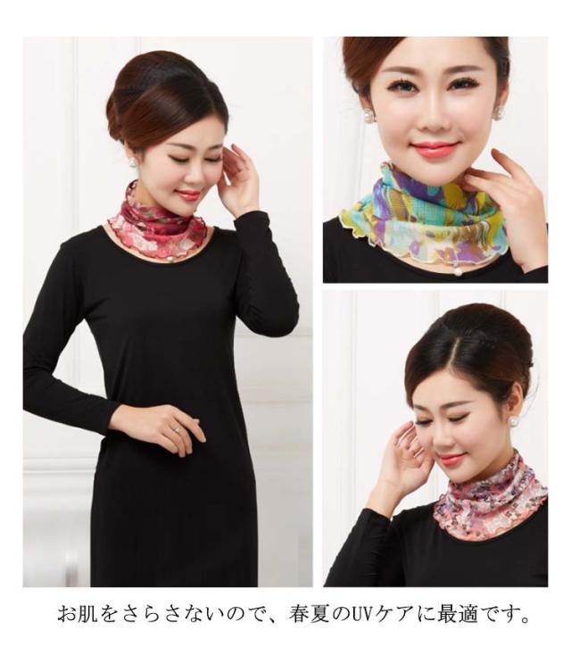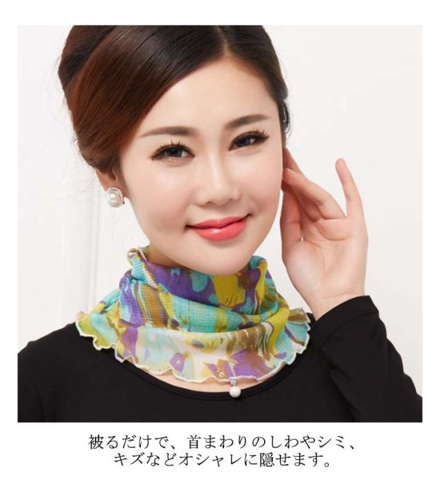 | シルクのメッシュ素材なので通気性よく、蒸れずに、いつもサラサラ快適♪ 被るだけで、首まわりのしわやシミ、キズなどオシャレに隠せます。 お肌をさらさないので、春夏のUVケアに最適です。 紫外線対策はもちろん、夏の冷房冷え対策や首元からデコルテの空きを隠したいなどにも。 40代 50代 60代 70代 80代 90代など年齢を問わず、幅広い方々にお使いいただけます。 お誕生日祝い、母の日、敬老の日などプレゼントとしても喜ばれるでしょう。 | |